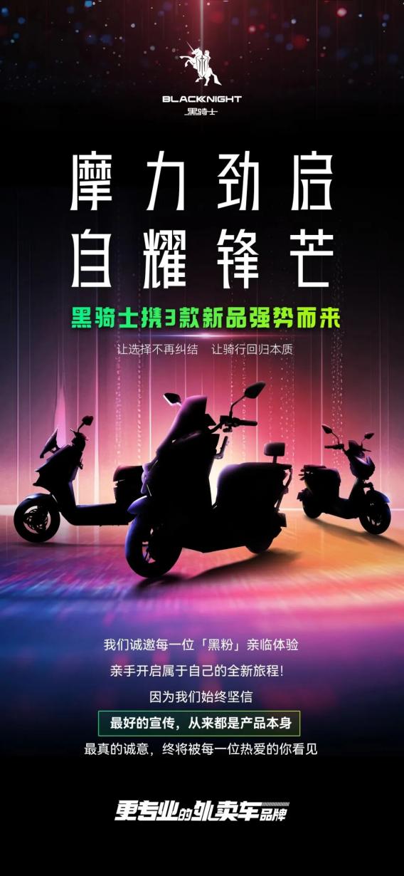 此次发布会预热海报上的“摩力劲启”四字,已明确指向全新电摩新品,引发行业对其动力性能、续航能力的诸多期待。而“自耀锋芒”中的“自”字,更掀起了另一波热议——在新国标深化落地的行业背景下,黑骑士是否将同步推出专为外卖场景深度优化的电动自行车?