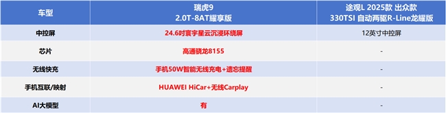 春节假期热闹非凡,接待客人、走亲访友之后,总该带全家人来一场说走就走的放松之旅。那么,对于中国家庭而言,谁才是春节全家出游的“真香”之选呢?接下来,我们就以瑞虎9 2.0T-8AT耀享版(以下简称“瑞虎9”)和途观L 2025款出众款330TSI自动两驱R-Line龙耀版(以下简称“途观L”)为例,看看谁的“幸福指数”更高。